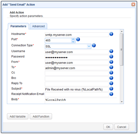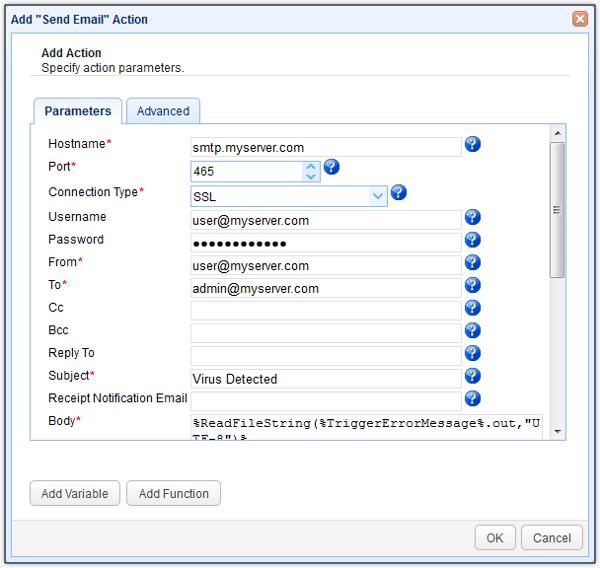 Scroll down that screen to input more information. If you want, you can omit the %LocalPath% variable from the Subject and place it in the Body instead. We just wanted to show you that it's possible to insert variables into the Subject field.