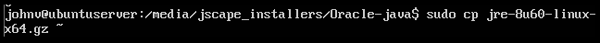 After downloading, copy the JRE tar file to a temporary location on the server. In our case, we copied it to our user account's home directory. To do that, we entered: