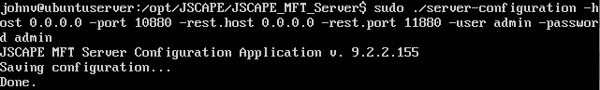 You now have JSCAPE MFT Server running on your Linux machine. Your secure FTP server will be running off of that. We can now say goodbye to this machine (and the command line) and head out to any desktop that can access this machine from the network.