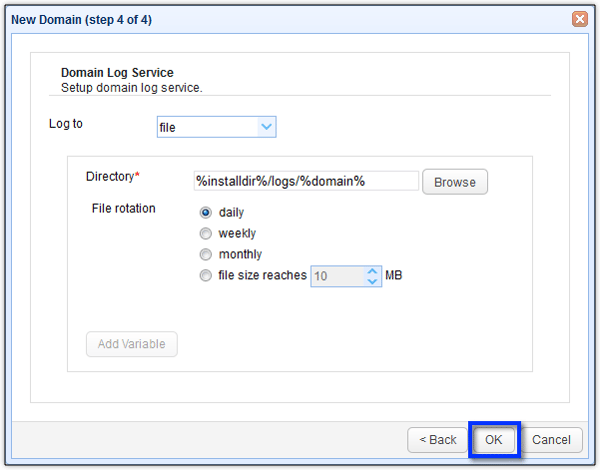Same here. Click OK to finalize the initial set up. For more details, refer to the documentation.
