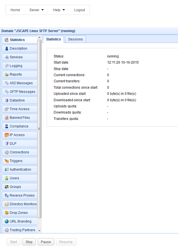 The secure file transfer protocol service we'll be installing on our Ubuntu Server is actually part of JSCAPE MFT Server, a managed file transfer server that comes with loads of built-in capabilities like automation, multi-protocol support, multi-factor authentication options, password policies, encryption key management, reporting, scheduling, email notifications, and others - all configurable from a nice administrative Web graphical user interface.