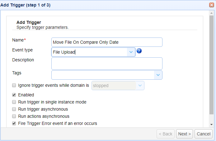 Before creating a custom trigger with function IsFileNewerByTimeStamp, you need to have build installed in the server where JSCAPE MFT Server is running.