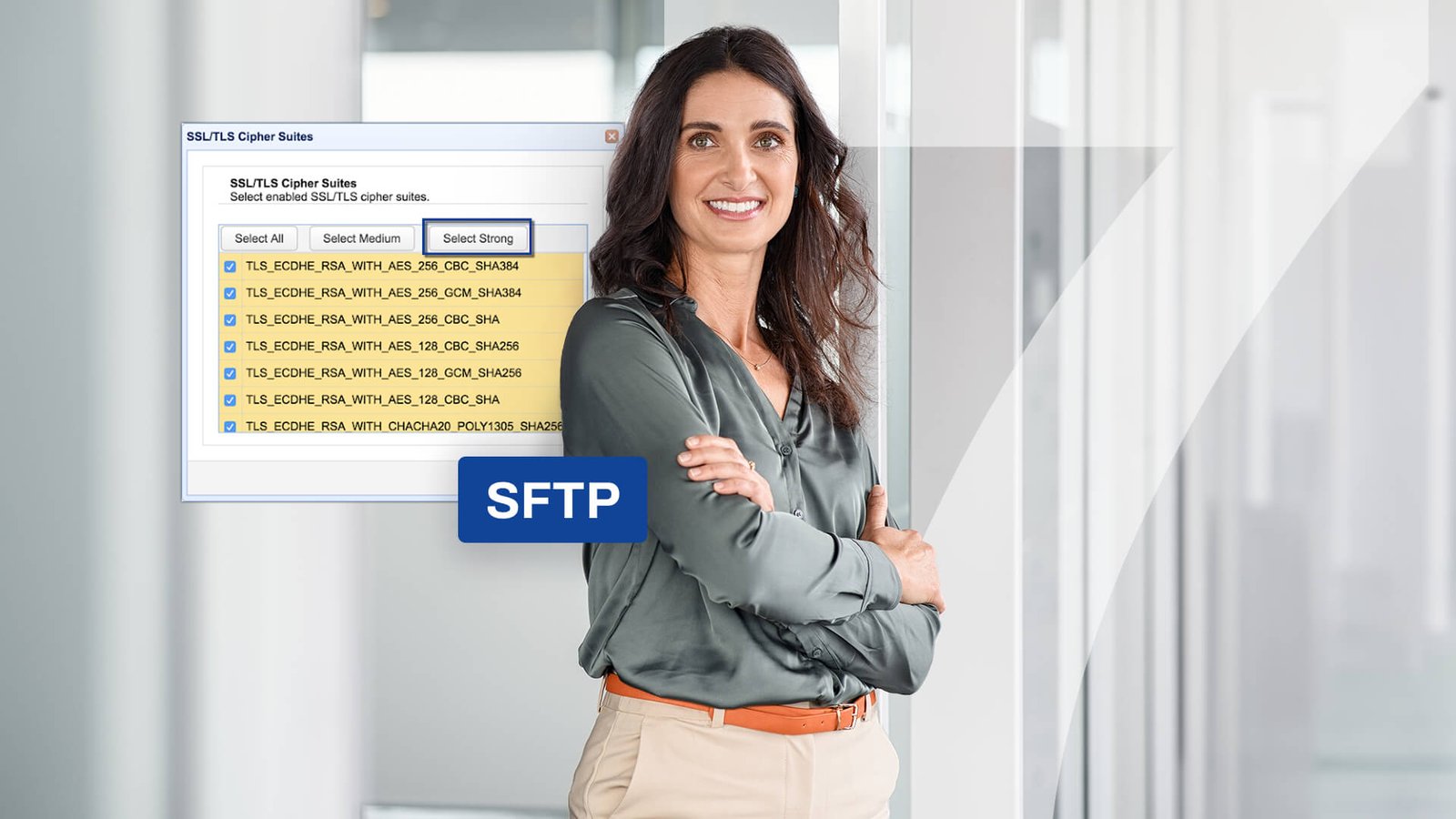 Both protocols can be considered secure FTP. They can encrypt data during transmission, perform data integrity checks and even enable you to apply advanced cryptographic configurations. For instance, you can choose to use strong encryption, disable obsolete cryptographic protocols or use more secure key exchange algorithms. We’ll elaborate on these functions later.